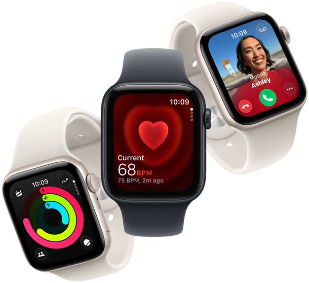 Pantalla Pantalla siempre activa por primera vez en la línea SE, para ver la hora y notificaciones sin levantar la muñeca ni tocar la pantalla.